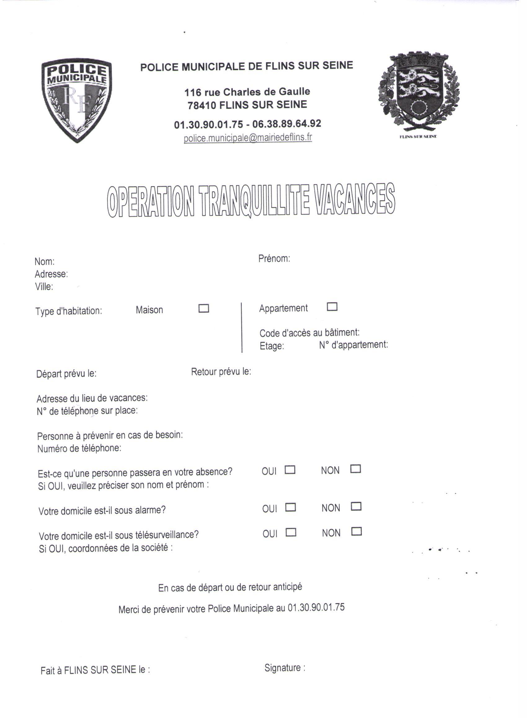 Avant de vous absenter, avertissez le Bureau de Police Municpale, en remplissant le formulaire ci dessous.