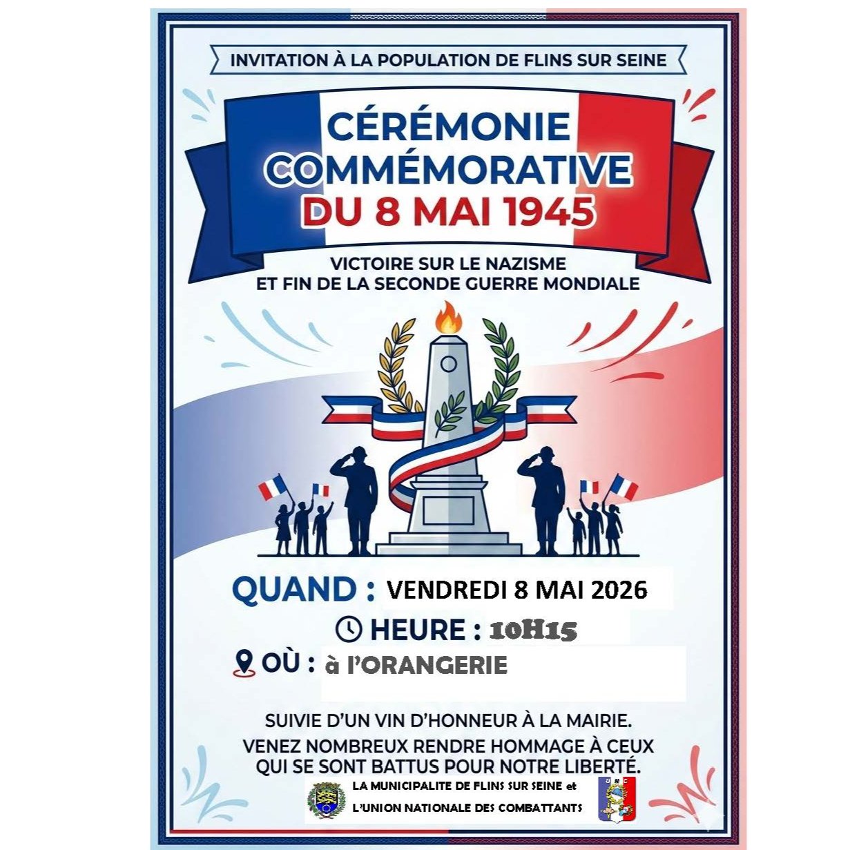 L’Union Nationale des Combattants invite la population à participer à la cérémonie commémorative de la victoire du 8 mai 1945, marquant la fin de la Seconde Guerre mondiale en Europe.